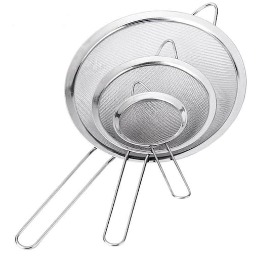 Kit completo de peneiras em aço inoxidável Moderna, super resistente e produzida em aço inoxidável de verdade, feita para durar muito tempo e se tornar sua companheira na cozinha, seja em preparo de doces, sucos, chás, etc. Funciona perfeitamente para peneiras partículas pequenas, pois a sua malha é fina. Seu cabo vazado permite que pendure as peneiras em suportes com gancho, inclusive acomodando uma dentro da outra, economizando um bom espaço na sua cozinha. Especificações técnicas Peneira P 21,5 cm comprimento x 8,5 cm diâmetro Peso: 44 g Peneira M 30,6 cm comprimento x 14 cm diâmetro Peso: 85 g Peneira G 38,4 cm comprimento x 20 cm diâmetro Peso: 149 g Conteúdo da embalagem: 3 peneiras 1 pequena, 1 média e 1 grande Ficha técnica - Cor: Inox - Diâmetro: 8,5 cm / 14 cm / 20 cm - Fonte do produto: - Material da estrutura: Aço inoxidável - Unidades por embalagem: kit com 3 peneiras - Plataformas excluídas: Desktop - Material da malha: Aço inoxidável - Tipo de malha: Fina Marca: Não Informado Ean: 6015605376348