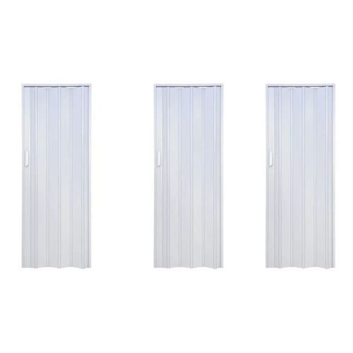 O kit contém 3 unidades do produto. Altura do Conjunto: 210 cm Ambiente: null Ambiente Principal: Cozinha Cor: Gelo Cor do Produto: Gelo Cor Predominante: Branco Informação Complementar: 3x Porta Sanfonada de PVC 210x84cm Gelo Largura: 84 cm Altura: 210 cm Peso: 4,73 kg Necessita Montagem: Sim