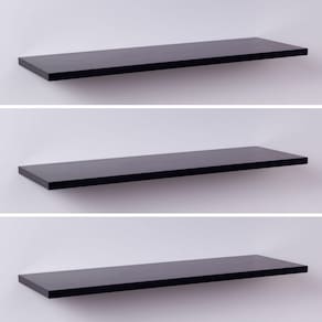 Kit com 3 Prateleiras de Madeira na cor Preto 40cm x 20cm x 1,5xm Com Suporte de Embutir (Invisível) . Cada prateleira do Kit é acompanhada de 2 suportes de tipo de Embutir (Invisível) para fixação. Descrições: Cor: Preto Tamanho: 40cm largura x 20 cm profundidade x 1,5cm espessura Material: Madeira MDP Fixação: de embutir (invisível) Instruções de uso e instalação: Para fácil limpeza, utilize pano levemente umedecido. Não utilizar produtos químicos ou abrasivos. Acompanha embalagem com as instruções de montagem e fixação. Observação: todos os itens de decoração das fotos não acompanham o produto. Ean: 7899983604502