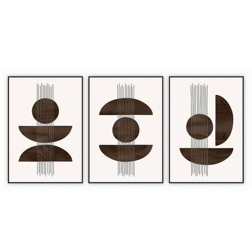 Kit Com 3 Quadros Decorativos Abstratos Com Moldura Para Sala Quarto Escritório 42x622 Abstrato 007