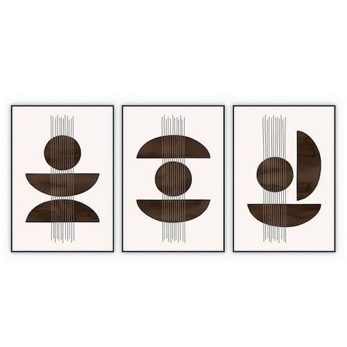 Kit Com 3 Quadros Decorativos Abstratos Com Moldura Para Sala Quarto Escritório 52x723 Abstrato 007