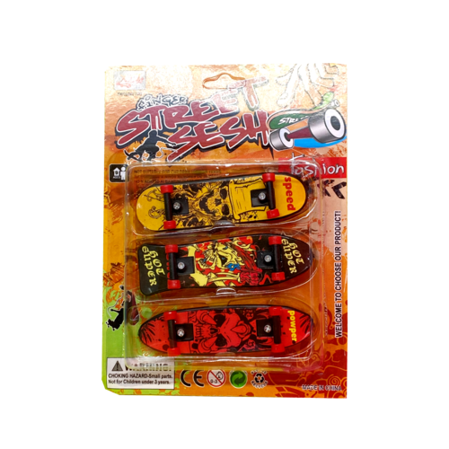 Pacote Completo: Cada kit inclui três skates de dedo, permitindo que as crianças escolham entre diferentes designs ou compartilhem com amigos.Peças Intercambiáveis: Os skates vêm com peças que podem ser trocadas, como rodas, eixos e decks, para personalização e criação de estilos únicos.Tamanho Compacto: Ideal para brincar com os dedos, perfeito para manobras e truques miniaturizados.Material Durável: Fabricado em plástico resistente, projetado para suportar o uso contínuo e garantir diversão prolongada.Estimula a Criatividade: A possibilidade de personalizar os skates incentiva a criatividade e o desenvolvimento de habilidades de design.O Kit com 3 Skates de Dedo em 24 unidades é ideal para festas, eventos ou como presente para grupos de crianças. Cada kit proporciona horas de entretenimento, competição amigável e oportunidades para criar o skate dos sonhos, garantindo diversão em dobro para todos!