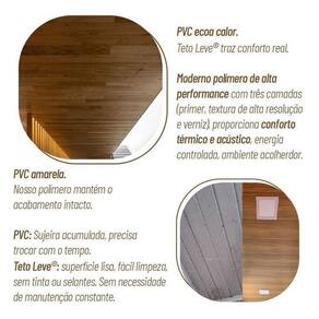 O Forro Teto Leve® Ipê une sofisticação e praticidade, com acabamento amadeirado profundo e superfície lisa. Seu sistema de encaixe macho/fêmea proporciona instalação ágil, limpa e econômica.