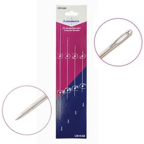 O Kit com 4 Agulhas de Mão LM-KAB é ideal para costura de bonecas e projetos de artesanato. As agulhas são extra-longas, com grandes orifícios que facilitam o manuseio de fios grossos. Com tamanhos variados, esse kit oferece versatilidade e precisão para trabalhos manuais delicados.