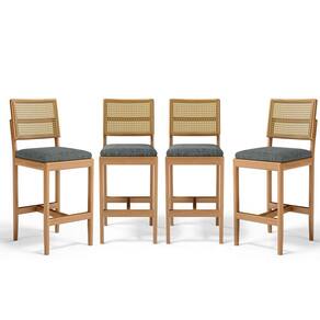 Kit Com 4 Banqueta Milena Madeira Maciça Assento Estofado Encosto De Tela Palha Sextavada Veludo Chumbo 109 - Banquetas Banquinhos Em Madeira Maciça Encosto De Tela Palha Sextavada