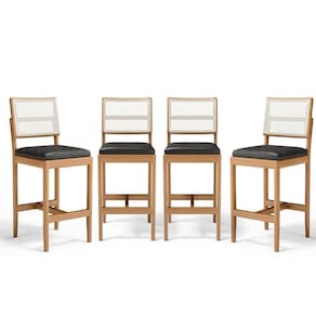 Kit Com 4 Banquetas Milena Madeira Maciça Assento Estofado Encosto De Tela Sintética Courino Preto 503 - Banquetas Banquinhos Em Madeira Maciça Encosto De Tela Sintética