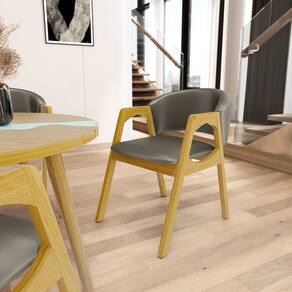 Apresentamos a você a cadeira Agatha, ela é estofada com espuma D-23 no assento, espuma D-23 no encosto e seus pés são feitos de madeiras maciças de eucalipto na cor castanho.
