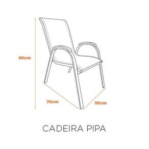 Kit com Mesa Arpoador e Cadeiras Pipa: elegância e resistência para área externa. Estruturas em alumínio, mesa com tampo em vidro temperado e cadeiras com assento em tela para conforto e durabilidade. Altura do Conjunto: 96 cm Ambiente: null Ambiente Principal: Jardim e Varanda Cor: Cinza Informação Complementar: 1x Kit com 4 Cadeiras de Alumínio para Jardim Pipa Cinza Largura: 55 cm Altura: 96 cm Peso: 3,42 kg Profundidade: 76 cm Necessita Montagem: Não