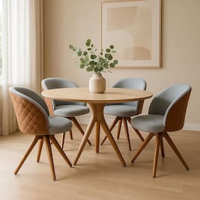 Kit com 4 Cadeiras Giratórias com Base em Madeira Maciça CorMel – Exclusiva Linho Cinza -