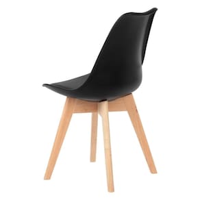 Do designer finlandes Eero Saarinen, a cadeira com assento estofado Saarinen representa um trabalho icônico de design da década de 50, juntamente com a Eames. Sua concha ergonômica é produzida em PP (Polipropileno) e conta com assento fixo em tecido sintetico (PU). Seus pés são feitos em madeira com ótimo acabamento.