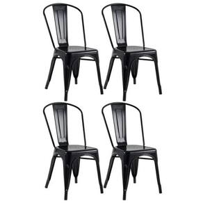 Kit Com 4 Cadeiras Tolix Preto Fosco Industrial Durável, Moderna E Versátil Para Sala, Cozinha Ou Bar Cadeira Tolix Iron Design Cadeira Fixa Design Tolix Metal Preta Conhecida popularmente como ?Cadeira Francesinha?, tem grande influência no mercado europeu devido ao seu elegante design retrô. O modelo clássico idealizado pelo francês Xavier Pauchard nos anos 20 foi resultado de seu experimento pioneiro da fabricação de móveis com metal galvanizado. A cadeira com formas simples, porém funcionais fez tanto sucesso que se tornou muito popular em fábricas, escritórios, restaurantes, bem como nos cafés, bares e parques públicos da época. Hoje conhecida como ?Cadeira Tolix?, é um ícone da estética industrial, podendo ser utilizada em qualquer ambiente trazendo elegância e personalidade. Com estrutura em aço de carbono e acabamento em pintura eletrostática, pode ser utilizada em ambientes externos. Projetada com alguns furos em seu assento com a finalidade de não acumular água, facilitando sua limpeza e manutenção. A ?Cadeira Tolix? é clássica, com design vintage e pode ser combinada com outros modelos de cadeiras. Disponível em variedade de cores, permitindo um ambiente mais descontraído.