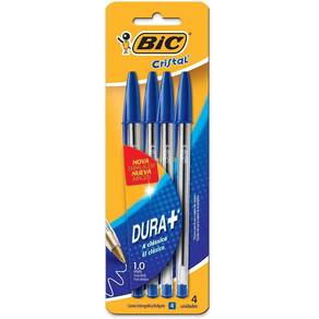 a caneta que é sinônimo de qualidade conhecida no mundo inteiro corpo hexagonal que assegura o conforto na escrita e transparente para visualização da tinta. Tinta de alta qualidade, que seca rapidamente evitando borrões na escrita. Escrita macia produto fabricado com a quantidade certa de matéria-prima para uso prolongado e seguro. Contém na embalagem: - 01 cartela com 4 canetas azul