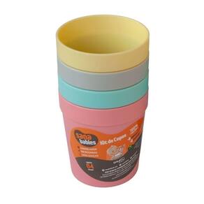 - Composição: Polipropileno; - Material: Livre de BPA e Phtalatos; - Totalmente atóxico; - Leves, higiênicos e seguros; - Podem ser levados à máquina de lavar louças, congelador e micro-ondas; - Muito mais praticidade; - Conjunto com laranja, lilás, verde e rosa; - Capacidade de 200ml cada copo; - Excelente custo-benefício.