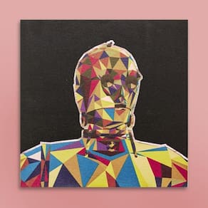 Tenha alguns dos personagens ícones da saga Star Wars como o Darth Vader, C3PO, R2D2 e de Stormtrooper com o Kit com 4 Quadros Ícone Star Wars Colors!