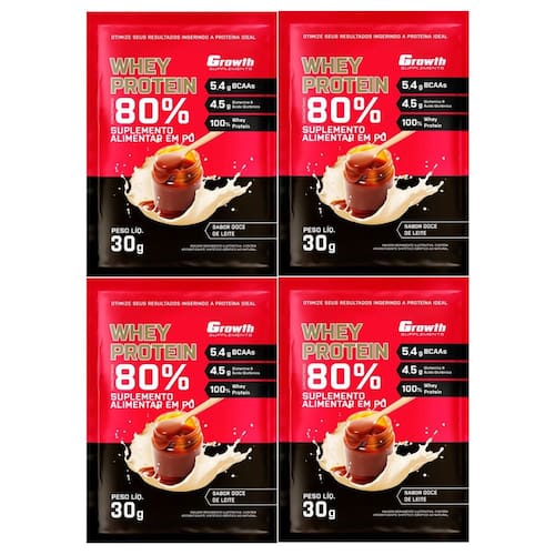 Kit com 4 Saches Whey Protein 80% 30g Growth doce de leite - Doce de leite - Único
