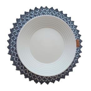 Kit com 4 Sousplat em Crochê Artesanal 35cm Branco e Cinza Sousplat de Crochê Artesanal - Elegância e Charme à Sua Mesa