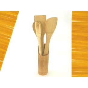 Especificações: 1 Colher de Bambu: 28cm 1 Garfo de Bambu: 28 cm 1 Espátula de Bambu: 30cm 1 Espátula Pão Duro de Bambu: 30cm 1 Suporte de Bambu: 17cm x 6cm (as medidas podem sofrer pequenas alterações por se tratar de produto natural)