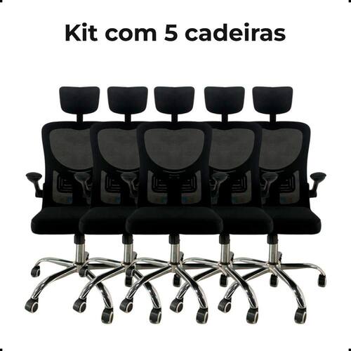 Kit com 5 cadeiras de escritório presidente mesh elegance preta