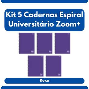 - Kit com 5 cadernos de capa dura na cor roxa - Cada caderno possui 96 folhas pautadas - Formato espiral que assegura praticidade - Papel de qualidade para escrita suave - Design moderno e exclusivo da linha Zoom Tilibra