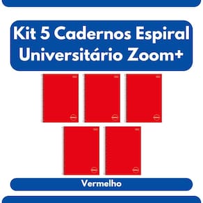 - Kit com 5 cadernos de capa dura na cor vermelha - Cada caderno possui 96 folhas pautadas - Formato espiral que garante praticidade - Papel de qualidade para escrita suave - Design moderno e exclusivo da linha Zoom Tilibra
