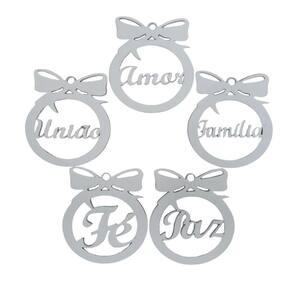 Kit Com 5 Enfeites Bolinhas De Natal Com Palavras Branco Kit com 5 Enfeites Bolinhas de Natal com Palavras Branco - Bolinhas de Natal KIT 5 Bolinhas para Árvore de Natal, feitas para personalização e Decoração, especialmente para você que deseja enfeitar sua casa para o Natal.