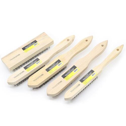 Kit Com 5 Escovas De Aço Cabo De Madeira Multiuso Tradestar