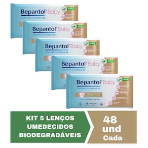 Kit com 5 Toalhas Lenços Umedecidos Biodegradáveis com 48un Cada - Bepantol