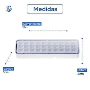 Especificações técnicas: Tensão de alimentação: 100 a 240 Vac 50/60Hz Consumo: 1 W Autonomia: 4 horas no fluxo mínimo, 2 horas no fluxo máximo Fluxo luminoso: 100 lm no máximo, 50 lm no mínimo Tempo de carga: 24h/220 V - 48H 127V Bateria: Lítio, 3,7 V 500 mAh Tipo de lâmpada: 30 LEDs brancos Autobrilho Temperatura de operação: -10 C a 50 C umidade 90% Dimensões: L A P 48x175x28 mm Peso: 110g Marca: Não Informado