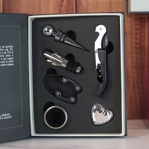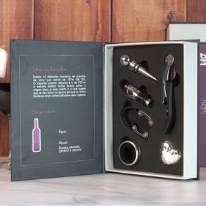 A escolha de um vinho deve sempre ser baseada na ocasião em que será servido, festa, reunião, jantar... Cada ocasião pede um vinho diferente, mas todas combinam com amor e acessórios!É o presente perfeito para quem irá compartilhar com você este momento.Estojo em MDF formato livro com pintura temática, perfeita para completar sua coleção e agregar na decoração do ambiente.Especificações do produto:Material do Estojo: MDFMaterial dos acessórios: Metal.Dimensões do produto:Altura: 21cmLargura: 4cmComprimento: 16,5cmItens Inclusos:- Estojo decorado- Saca Rolhas.- Tampa para Garrafa.- Oxigenador.- Corta Lacre.- Anel Salva Gotas.- Enfeite Coração.