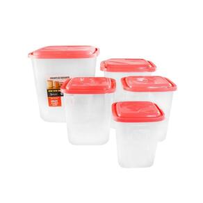 Kit com 5 Potes Rosa/Vermelho Porta Alimentos e Mantimentos Kit Porta Mantimentos com 5 Potes Vermelho ou Rosa ============================================================ Contém: 05 Potes Especificações: - Material: Polipropileno - Pote 01: 13cm x 09cm x 11cm / 900ml - Pote 02: 16cm x 12cm x 15cm / 1,9 Litros - Pote 03: 16cm x 12cm x 15cm / 1,9 Litros - Pote 04: 19cm x 15cm x 18cm / 3,5 Litros - Pote 05: 23cm x 18cm x 22cm / 6,6 Litros - Com Tampa: Sim - Atóxico: Sim - Livre de BPA: Sim - Peso do Kit: 420 gramas - Pode ir no Freezer, microondas e lava-louças - Cor do Pote: Transparente - Cor da Tampa: Vermelho ou Rosa enviado de forma aleatória conforme disponibilidade em ============================================================ Devido à diferença entre monitores e iluminação diferentes, pode haver variação na tonalidade apresentada no anúncio. Medidas muito aproximadas. Marca: Não Informado