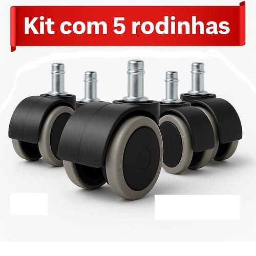 Kit com 5 Rodinhas para Cadeira de Escritório - Silenciosas, Resistentes e de Instalação Rápida Transforme sua cadeira com rodinhas modernas, resistentes e super fáceis de instalar O que você recebe: 5 rodízios universais compatíveis com a maioria das cadeiras de escritório pino padrão de encaixe 11mm x 22mm Instalação Rápida e Sem Ferramentas Basta encaixar e pressionar - em segundos sua cadeira está renovada Principais Benefícios: Silenciosas - deslizam suavemente, sem ruídos incômodos Não riscam o piso - ideais para madeira, cerâmica, porcelanato ou laminado Giro 360 - mais liberdade de movimento e conforto Alta resistência - suporte de peso e durabilidade incomparável Design moderno - valoriza o visual da sua cadeira Especificações Técnicas: Pino de encaixe universal 11mm x 22mm Material: Poliuretano + estrutura reforçada Diâmetro da roda: 50mm Cor: Preto com aro cinza