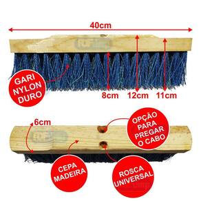 Medidas: - base 40 cm largura - base 6cm de comprimento - cerdas 8 cm - 11 cm de altura do nylon até o top da base