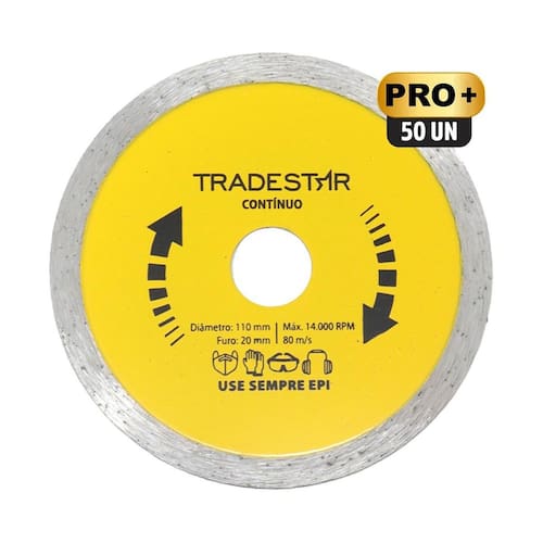 Kit com 50 unidades Discos Diamantado Contínuo 110x20mm Porcelanato O Disco Diamantado Contínuo 110x20mm Porcelanato Tradestar: a escolha definitiva para profissionais que buscam precisão e excelência no corte de porcelanato. Com um diâmetro de 110mm e um design contínuo, este disco proporciona cortes limpos e suaves em materiais cerâmicos e porcelanatos de alta qualidade. Principais Destaques e Aplicações: Cortes Precisos: Realize cortes exatos em porcelanatos e cerâmicas, obtendo acabamentos impecáveis. Projetos de Revestimento: Ideal para profissionais que trabalham com instalação de pisos e revestimentos em ambientes internos e externos. Como Alcançar Cortes de Qualidade: Garanta que a superfície a ser cortada esteja fixa e segura. Fixe o disco em uma serra mármore e ajuste a velocidade para um corte suave. Mantenha o disco em um ângulo adequado e faça movimentos controlados para um corte uniforme. Benefício Central do Disco Diamantado Contínuo: O Disco Diamantado Contínuo 110x20mm Porcelanato Tradestar é a ferramenta essencial para profissionais que buscam cortes perfeitos e acabamentos excepcionais em seus projetos. Adquira agora e experimente a precisão e a eficiência que farão a diferença em seu trabalho. Disco Diamantado Contínuo Indicado Para Cortar Pisos, Azulejos, Mármores, Porcelanas e Porcelanatos. Corte Refrigerado. Tamanho: 110X 20 MM Quantidade por embalagem - 50 unidades 90 dias após a compra. Imagens meramente ilustrativas As tonalidades da cor do produto podem sofrer alterações de acordo com a tela que estiver usando para visualização. Vantagens de Comprar com a JJC Ferramentas: Experiência e Confiança: Somos especialistas em ferramentas e acessórios, garantindo produtos de qualidade e desempenho superior. Variedade e Qualidade: Oferecemos uma seleção abrangente de ferramentas, sempre priorizando a durabilidade e eficiência. Atendimento Personalizado: Nossa equipe está pronta para ajudá-lo, oferecendo suporte técnico e orientações precisas. Entrega Rápida: Garantimos uma logística eficiente, assegurando que seu pedido chegue no menor tempo possível. Satisfação Garantida: Se por algum motivo não ficar satisfeito, oferecemos política de devolução sem complicações. Marca: Tradestar