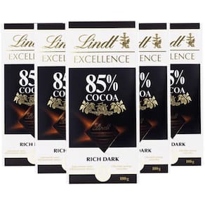 Kit com 5un Chocolate Suiço LINDT Excellence 85% Dark 100g Descubra a intensidade do Chocolate Suíço LINDT Excellence 85% Cacau. Com mais de 175 anos de experiência em chocolataria, a Lindt continua a ser uma referência de excelência na produção de chocolates. Este chocolate escuro oferece uma experiência sensorial única, com um sabor profundo e rico que cativa os verdadeiros apreciadores de chocolate. Cada pedaço é uma celebração do cacau de alta qualidade e do artesanato suíço, garantindo uma experiência indulgente e memorável em cada mordida.