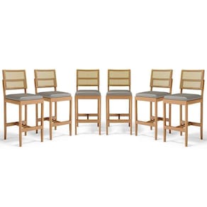 - 6 Banquetas Modelo Milena Em Madeira Com Assentos Estofados (Montadas)