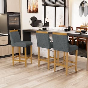 - 6 Banquetas Modelo Eloá Em Madeira Com Assentos Estofados (Montadas)