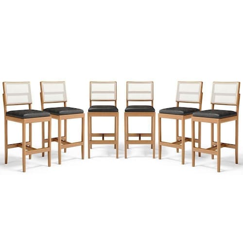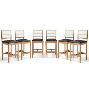 - 6 Banquetas Modelo Milena Em Madeira Com Assentos Estofados (Montadas)