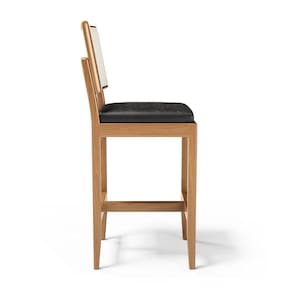 A estrutura desta banqueta é construída com madeira maciça de alta qualidade, parafusos para fixação do assento na estrutura. A madeira maciça é de eucalipto tratado que garante a durabilidade e a resistência da cadeira, tornando-a uma peça que será apreciada por gerações.