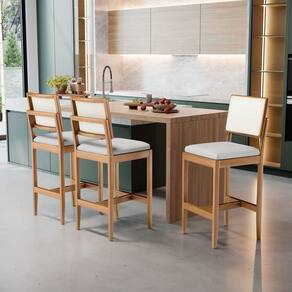 - 6 Banquetas Modelo Milena Em Madeira Com Assentos Estofados (Montadas)