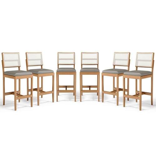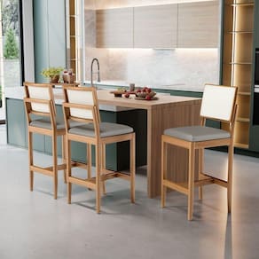 - 6 Banquetas Modelo Milena Em Madeira Com Assentos Estofados (Montadas)