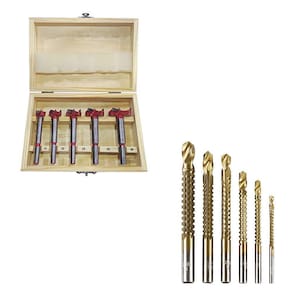 Kit 5 Brocas Forstner Fresa 15 a 35mm para Dobradiça Charbs + Jogo de Broca de Corte Lateral HSS 6 Peças Titânio Charbs