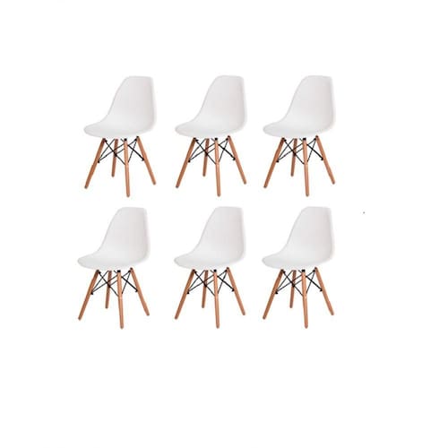 Kit Com 6 Cadeira Charles Eames Wood Dsw Branca - Base Madeira Cadeira Eiffel Eames Base Madeira A CADEIRA CHARLES EAMES EIFFEL foi criada nos anos 50, é vencedora do Museu de Nova York da concorrência Design de Mobiliário Low-Cost Arte Moderna Internacional. Sua base é em MADEIRA no formato de uma torre faz com que o ambiente não fique sobrecarregado. Adequa-se perfeitamente para compor conjunto de mesa de jantar ou qualquer outro ambiente em sua casa ou escritório. Ideal para receber amigos e familiares com um toque de elegância e charme. As pernas da cadeira são em madeira e fios de aço preto no qual garantem estabilidade à cadeira.