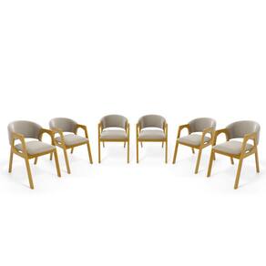 Kit Com 6 Cadeiras Agatha Madeira Maciça Estofada Para Mesa De jantar - Bege