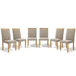 Kit Com 6 Cadeiras Ana Madeira Maciça Estofadas Para Mesa De Jantar - Bege