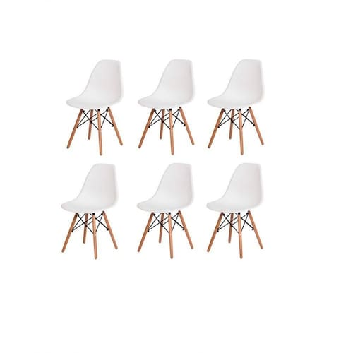 Kit Com 6 Cadeiras Charles Eames Wood Dsw Branca - Base Madeira - Branco