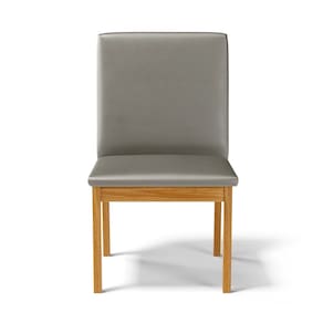 Apresentamos a você as cadeiras Daniela, elas são estofadas com espuma D-23 nos assentos, espuma D-20 nos encostos e seus pés são feitos de madeiras maciças de eucalipto na cor castanho.