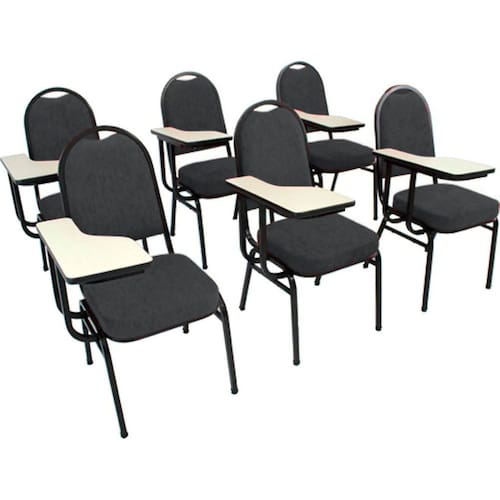 Kit com 6 Cadeiras Universitárias com prancheta para Auditórios Linha Hotel Marrom Café – Tonalidade da Cor: Marrom Café – Marca: Design Office Móveis - Modelo: Kit com 6 Cadeiras Universitárias com prancheta para Auditórios Linha Hotel Marrom Café O Kit com 6 Cadeiras Universitárias com prancheta para Auditórios e Hotel da marca Design Office Móveis, foi projetado para proporcionar conforto e bem estar, tornando o dia-a-dia mais agradável. Utilizado para compor diversos tipos de ambientes a Linha Hotel da marca Design Office Móveis são modelos de cadeiras para hotéis e auditórios, empresas de treinamento, salas de convenções, auditório e hotéis, com medidas avantajadas, ergonômicas e confortáveis, que se diferenciam de modelos de cadeiras para hotéis e auditórios convencionais existentes no mercado, de fabricação nacional com qualidade e garantia de 1 ano, direcionado para: Hotel , Auditório, salas de convenções, igrejas,empresas de treinamento, escolas, ambientes corporativos e empresas em geral. A Cadeira é entregue totalmente montada, sem a necessidade de qualquer montagem adicional, é só tirar da caixa e sentar-se. Dimensões: Largura do assento: 39,0 cm Profundidade do Assento: 41,0 cm Largura do Encosto: 34,0 cm Altura do Encosto: 40,0cm Altura Total: 91,0 cm Profundidade Total com prancheta: 72,5 cm Largura com prancheta: 55,0cm Peso da cadeira: 5kg - Empilhável com até 8 cadeiras sem a prancheta Altura do chão até o assento: 46,5 cm Estrutura da Cadeira: Fixa com 4 pés. Cor da Estrutura: Preto Com prancheta Kit com 06 Cadeiras Marca: Design Office Móveis Revestimento do Assento e Encosto: Material Sintético Garantia: 12 Meses/1 ano cobrindo defeitos de fabricação. **Medidas aproximadas, podendo haver variações** Observações Importantes: As medidas descritas nesse anúncio são aproximadas podendo sofrer pequenas variações sendo maiores ou menores. As cores das fotos do produto são meramente ilustrativas, a tonalidade da cor pode sofrer alterações sendo mais clara ou mais escura. Ao receber a mercadoria efetuar a conferência. Confira as dimensões do produto e certifique-se de que passará normalmente por elevadores, portas, escadas ou corredores de sua residência.