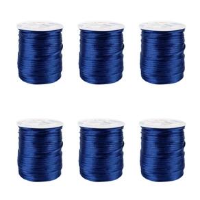 Kit Com 6 Cetim Rabo de Rato 2mm Rolo com 50 m Azul Marinho