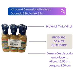 Kit Com 6 Dimensional Metálica Acrilex 35Ml - Escolha A Cor - Dourado Solar