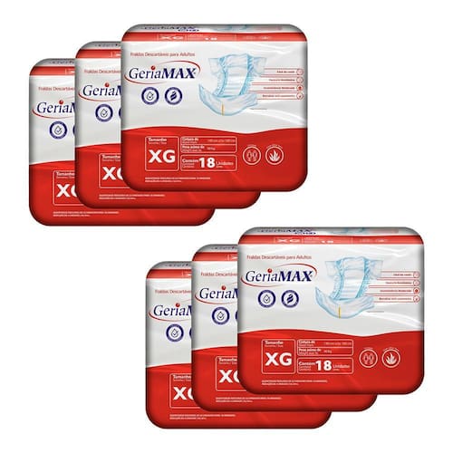 O Kit contém: 6 pacotes de Fraldas Geríatricas Geriamax XG com 18un cada